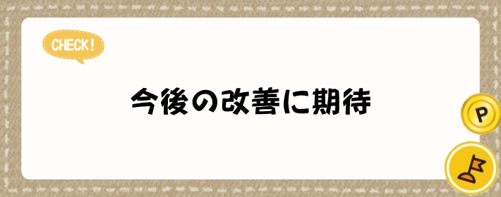 将来的な改善に期待したいところです。