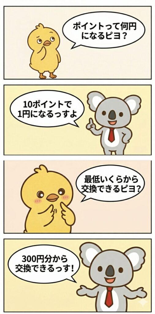 最低交換額:3,000ポイント(300円相当)から交換できます。
