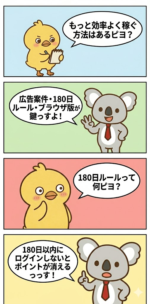 「180日ルールを知らずにポイントが消えてしまった。注意が必要」