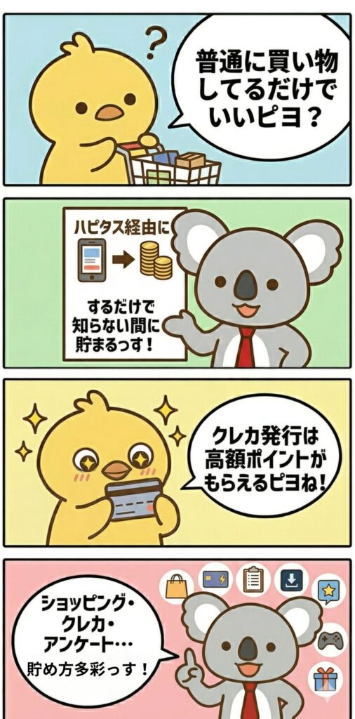 そうっす。普段の買い物をハピタス経由にするだけで、知らない間に貯まっていくっすよ!