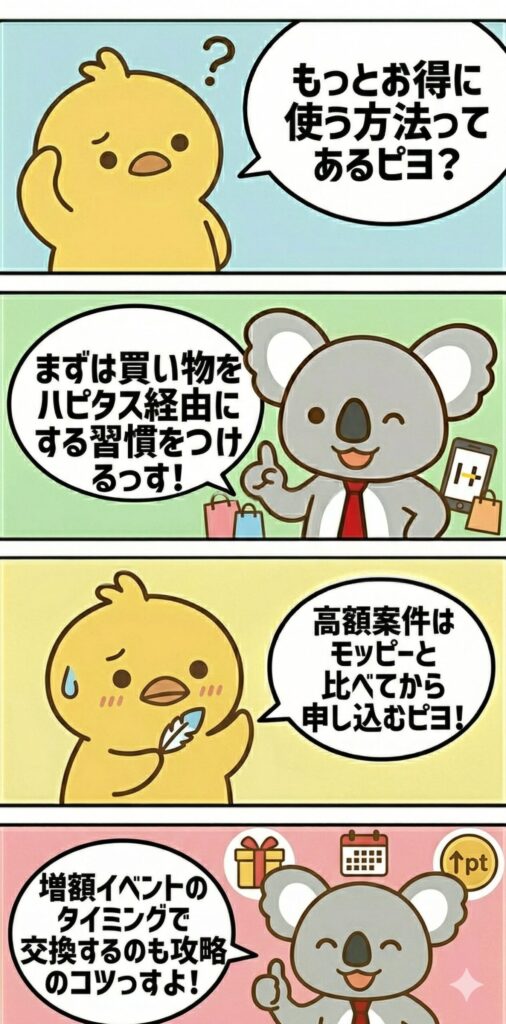 結論から言うと、使い方次第でかなりお得になるっす。モッピーと上手に使い分けるのがポイントっすよ!