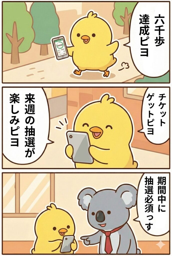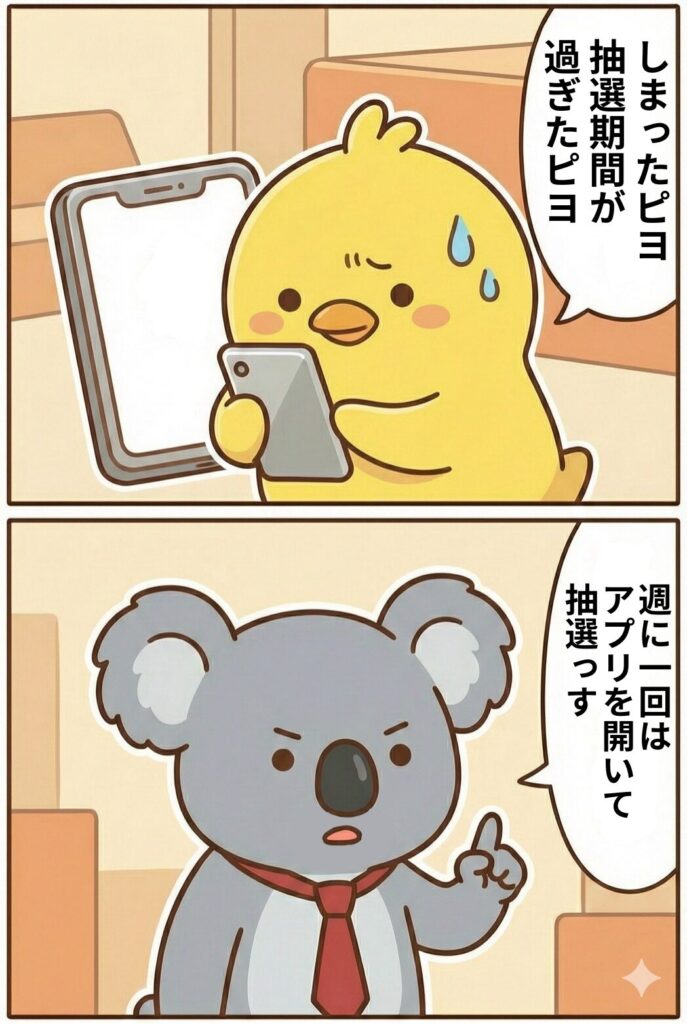 それなら気楽に続けられそうピヨ!翌週の抽選だけ忘れなければOKピヨね!