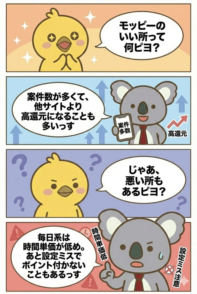 この使い方を徹底できるなら、モッピーは普通に“当たり”のポイ活サービスです。