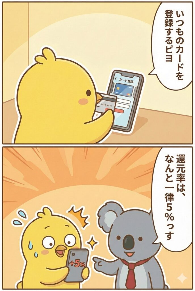 普通のクレカ還元の5倍くらいあるピヨ…