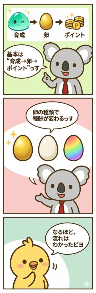 - スライムが卵を産み、卵の種類によって報酬が変化