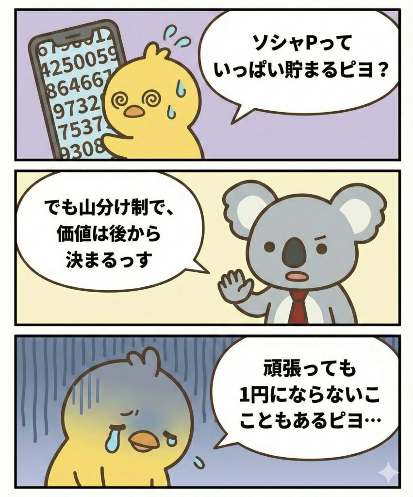 ソシャPはシーズンごとの山分け金額と総ポイント数によって変化します。