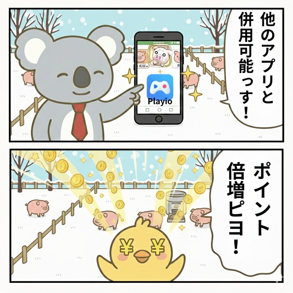 → これらを経由すれば、「出荷ぶたのクリア報酬」と「プレイ時間報酬」の二重取りが可能に!