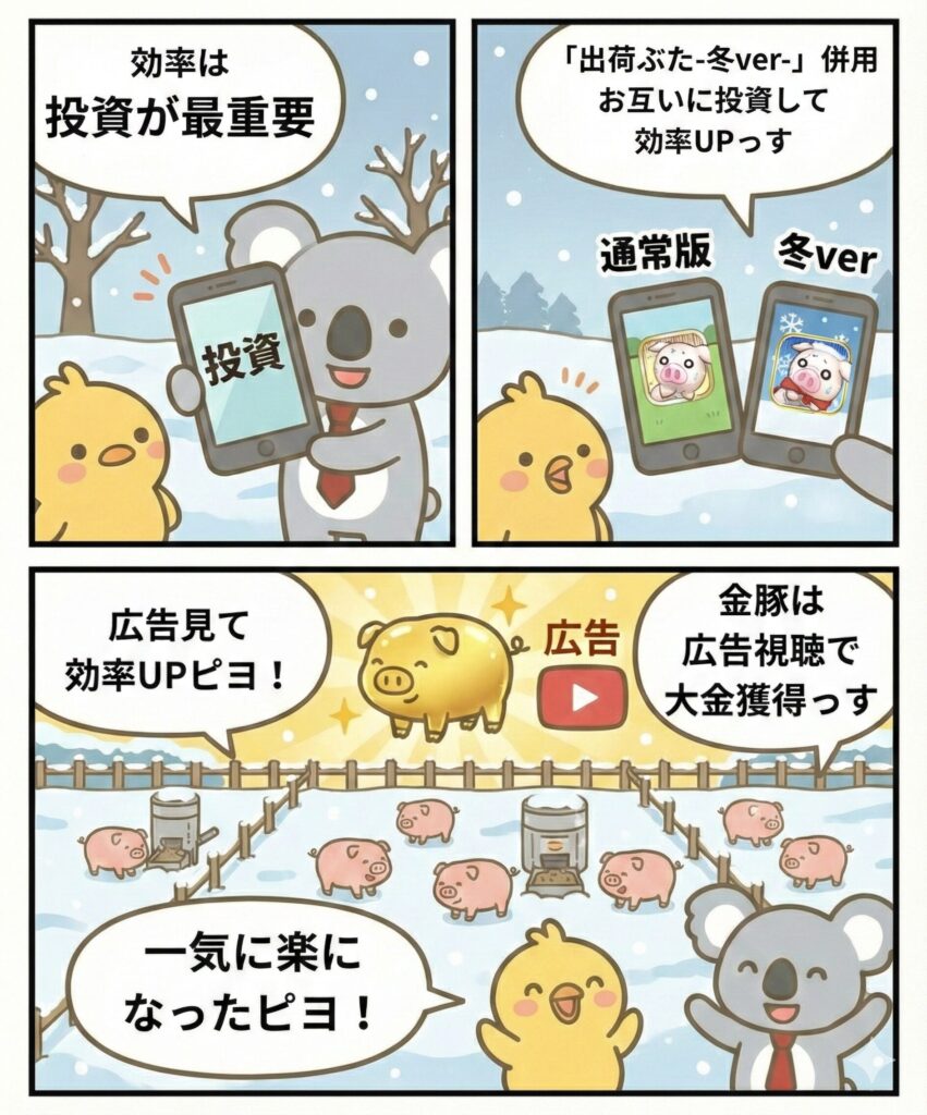 - 「出荷ぶた-冬ver-」と自分同士で投資をし合うと効率爆上がり!