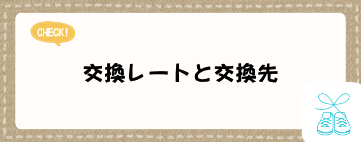 | 交換ルート | 必要ダイヤ | 還元額 | 備考 |