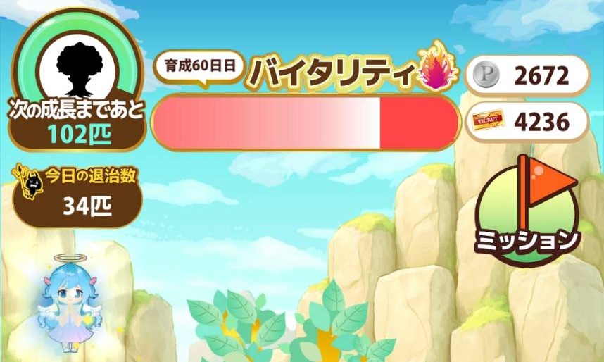 - ガイチュウ:タップで倒すと成長に繋がる(ガイチュウ放置でバイタリティが減る)