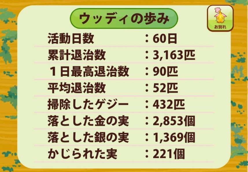 - ミュージック → 木の実を一気に落とす(1日1回)