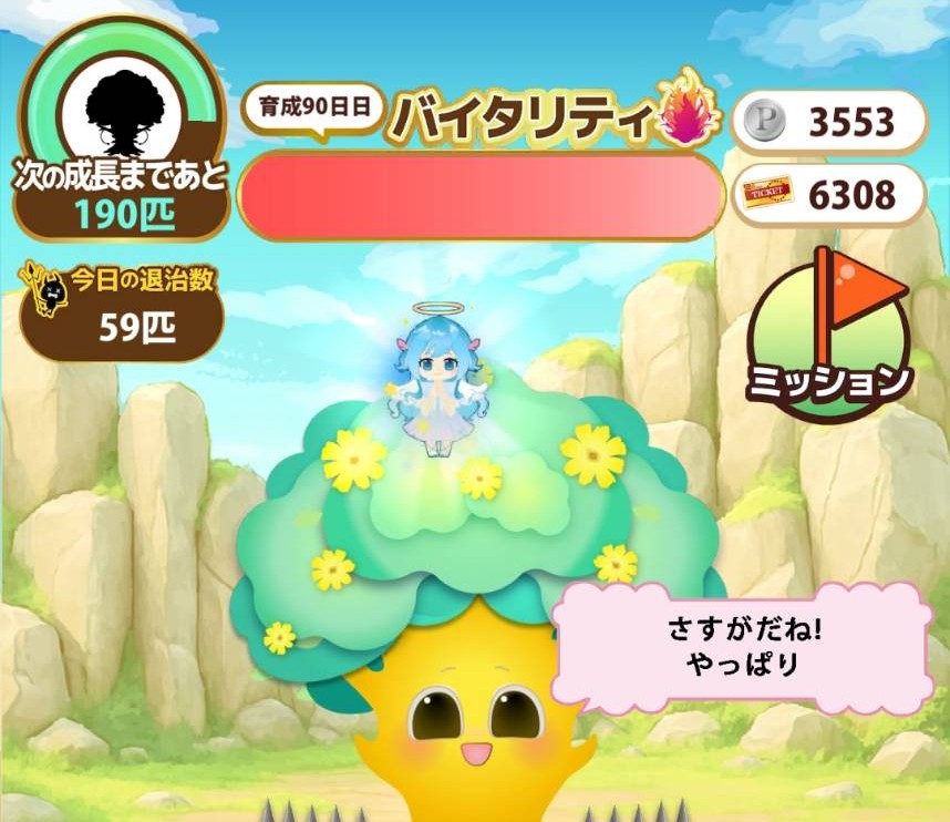 • ガイチュウ:タップで倒すと成長に繋がる(ガイチュウ放置でバイタリティが減る)