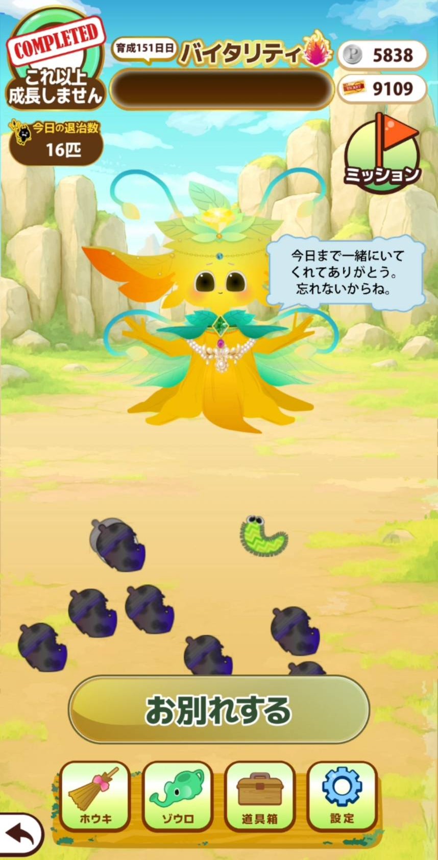 最終形態へ進化後は30日経過で強制的にお別れになるようです。