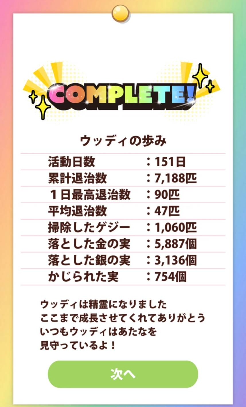 122日間ガイチュウ退治し続けた結果、ついに最終形態へ進化しました。
